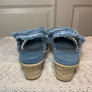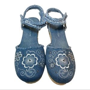 MONTEGO Bay Club Distressed Embroidered Floral Jeans Wedge Ankle Espadrilles 6.5