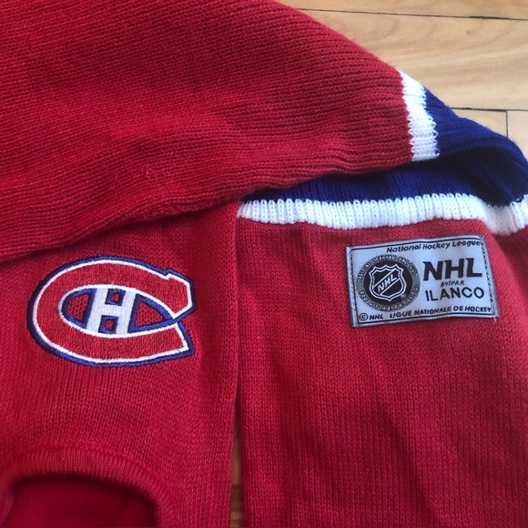 Montreal Canadiens knit red scarf, double layered with pockets / mitt.