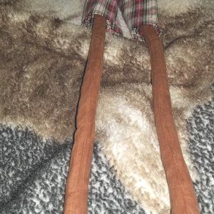 He stands around 35" tall, but is meant to be sitting as his little thin legs cannot hold him up! He is like new, and fully dressed with clothes with a heavier mid-body of some sort for stability. He is handcrafted with delicate details and a tree branch down the neck/spine.