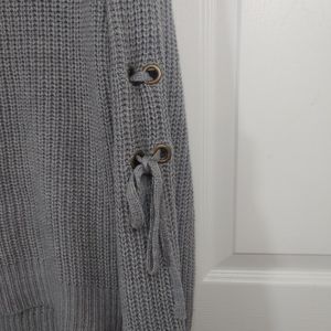 Features: Slight hi-lo hemline with slits, "lace up" features on sleeves