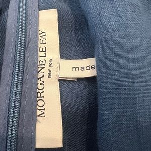 MORGANE LE FAY BLUE LINEN DRESS SIZE M 100% LINEN BACK ZIP CLOSURE RELAX FIT