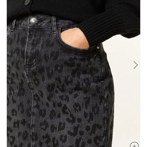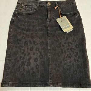 Mos Mosh Organic Cotton Victoria Cleo Leopard Print Soft Mini Denim Skirt, has multiple pockets and very stretchy, great leopard print detail