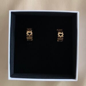 Authentic pair of open hoop shiny gold earrings. Brand new with box. No receipt.
