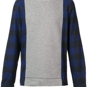 Heather grey and navy blue cotton plaid sleeves sweatshirt from mostly heard rarely seen.