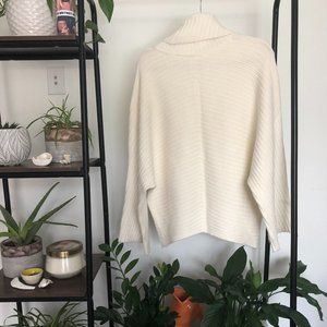 MOTH Anthropologie Women’s High Low Cream Cowl Neck Boho Super Soft Wool Blend sweater