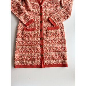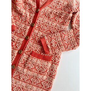 MOTH Orange Cotton Jacquard Knit Duster Cardigan Sweater, Size M