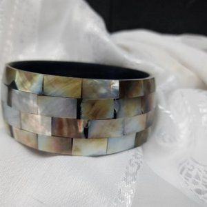 MOTHER OF PEARL BANGLE BRACLET - MOSAIC DESIGN IRIDESCENT MOP SHELL JEWELRY