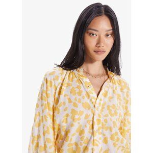 MOTHER Sunburst Yellow Leopard Floral Cotton Voile Puff Sleeve Blouse, Size L