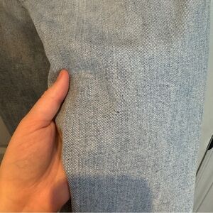 In very good used condition. All over intentional distressing, with busted knees. Small dark spot on the back, see photos. Item has been washed prior to shipping and fabric is slightly stiff from hanging dry; please treat as you see fit.