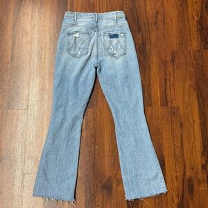 MOTHER The Hustler Ankle Fray Jeans – Size 26 – Distressed Light Wash Denim
