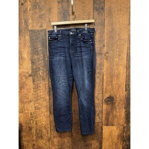 The MOTHER High Waisted Looker Ankle Blue Denim jeans in size 31x27 are a stylish addition to any woman's wardrobe. Made of high-quality denim, these ankle-length jeans feature a flattering high waist and a classic blue color. The Mother brand is known for its unique style and attention to detail, making these jeans a chic and versatile option for any casual outfit.