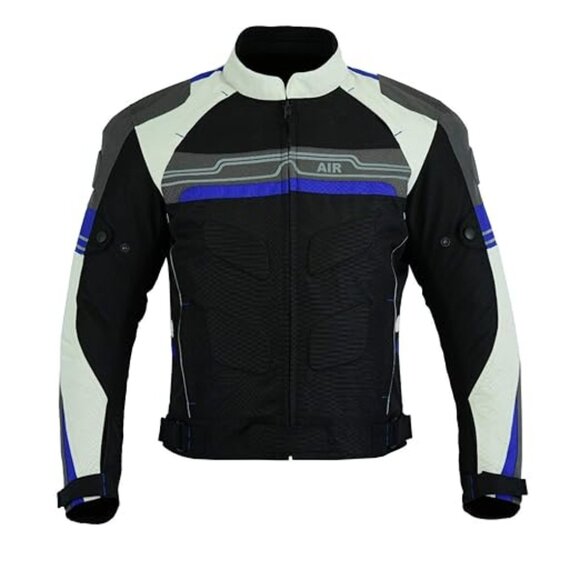 MOTORCYCLE ARMOURED HIGH PROTECTION CORDURA WATERPROOF JACKET BLACK/WHITE/BLUE ARMOR CJ-9495