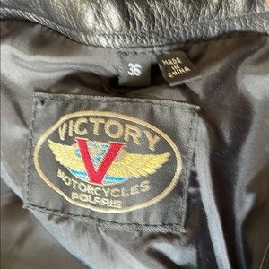 Victory motorcycles men’s black real leather pants with padded knees .protective paper still on zippers . Size 36 . Stay safe this season with these pants . Not Harley Davidson.victory branded New without tags