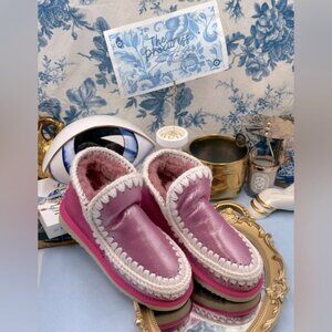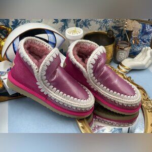 🆕 MOU 🧿 NWOT WOB Metallic & Glitter Pink Eskimo Ankle Boot, Sz EU 37