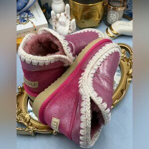 🆕 MOU 🧿 NWOT WOB Metallic & Glitter Pink Eskimo Ankle Boot, Sz EU 38