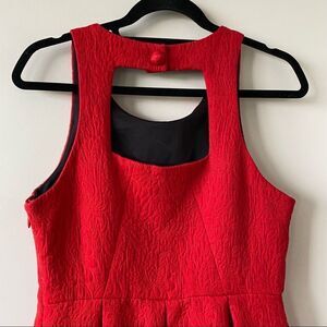 Moulinette Soeurs Anthropologie Fit Flare Red Nipped Brocade Jacquard Dress!! ❤️