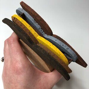 Set includes an infinity scarf, set of 6 cork coasters, steering wheel cover (NEW), Movember pin, two pack erasers (NEW), silicone ring and 5 pack of paper clips (NEW). One coaster has the tips of the moustache broken off (see photo) and the scarf has a few areas with snags but when you’re wearing it you can’t tell at all. The scarf is very light and airy, perfect for the summer. See pics for all details, conditions and measurements.