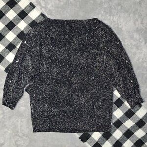 ♥︎1/2 Sleeve Metallic Cowl-V-Neck Sweater
