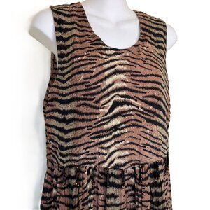 MPH Tiger Print Sleeveless Dress with Top Overlay Beaded Edge Vintage Y2K