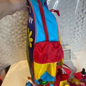 Mr Funny colourful kids backpack with side pockets, used condition , shows some wear