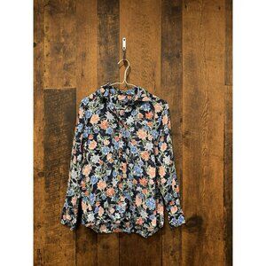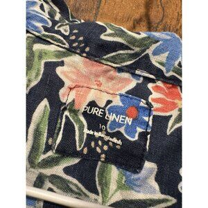 M&S Pure Linen Navy Blue Pink Red Floral Shirt Top Size Uk 10