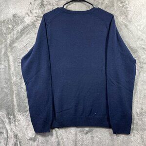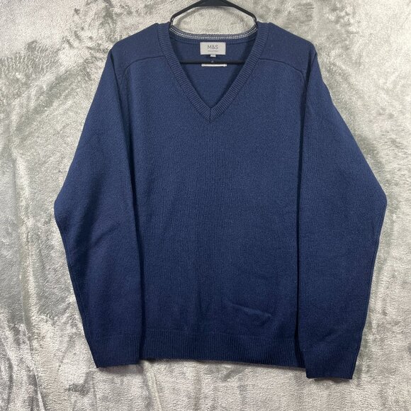 M&S Sweater Mens Large Blue Extra Fine Lambswool V-Neck Knit Preppy