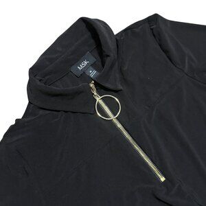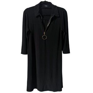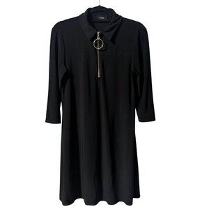 MSK Black Collared Dress | Gold O-Ring Zip Front | Size M | Like New