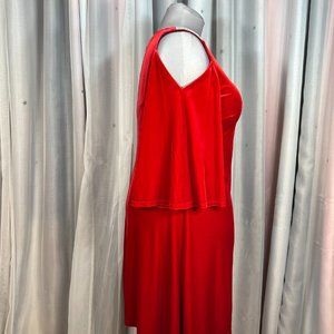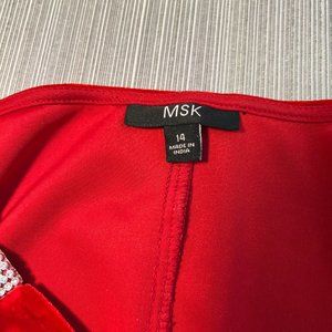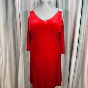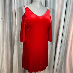 MSK Red Cold Shoulder Velvet Dress with rhinestone like detailing