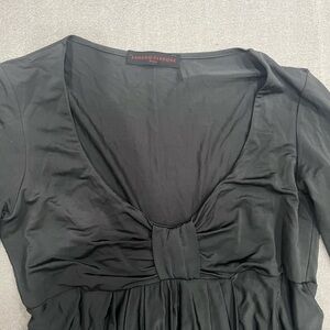 [M]Sandro Ferrone Rome Elegant Black Long Sleeve Deep V Pleated Mini Dress Bow