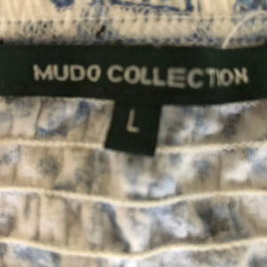 MUDO Collection Elasticized Floral Summer Pull On Top White + Blue Sz M/L