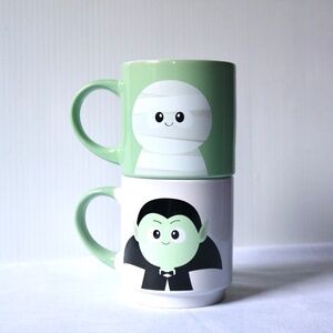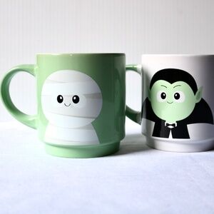 MUG SHOTZ Set of 2 Stackable Coffee Mugs Mint Green Mummy Vampire Halloween Fall