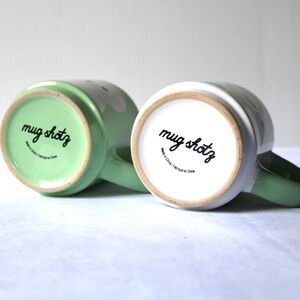 Adorable set of 2 Mug Shotz mugs. One mug features a cute mummy, the other a cute vampire. Graphic is on both sides of mug and each mug stand approx. 4" tall with a diameter of 3.5". Pre-owned but never used and in excellent condition - no chips cracks or stains. Smoke-free, pet friendly home!