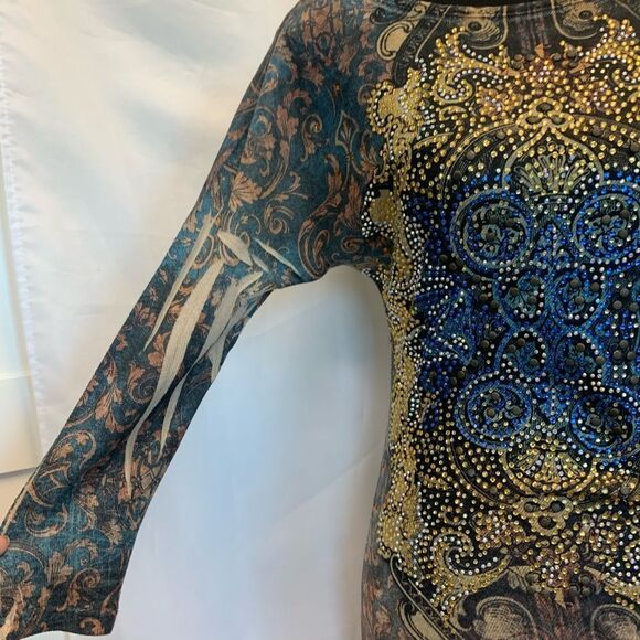 Multicoloured rhinestone embellished stretchy soft knit longsleeve dress Sz S