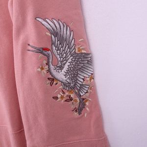 MUSIUM DIV Embroidered Crew Neck Sweatshirt, Musium Division, Soft, Stretchy, Slits at Sleeves, Peachy Pink, High Fashion Korean Brand