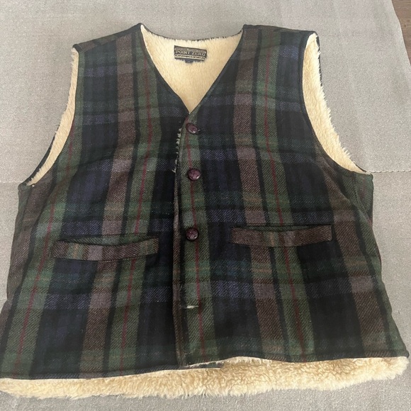 ![[M]VTG Point Zero Multicolor Plaid Wool blend Vest with Shearling Lining NWOT - Picture 1 of 6](https://di2ponv0v5otw.cloudfront.net/posts/2025/12/07/693584538e40fd660141a54c/m_69358456bd4ce3b4535c0a3f.jpeg)