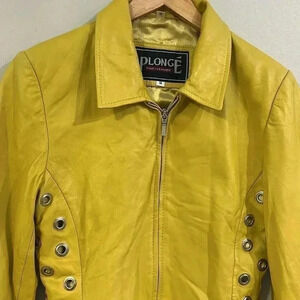 [M]Vintage PLONGE Yellow Leather Cropped Women Jacket with Eyelet around Waist