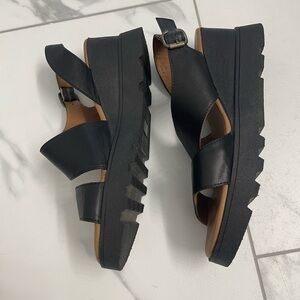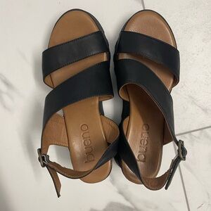 MWOT Bueno Jianna Black Platform Leather Sandals with Adjustable Ankle Strap
