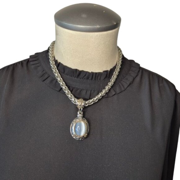 MX Signature Collection Vintage Heavy Silvertone Necklace with Ornate Pendant