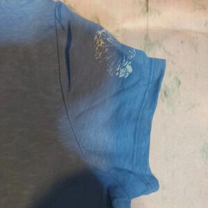 Flowers and bird on it with a flower on one sleeve. Worn style print