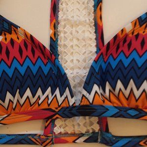 NWOT. Multi-colour pattern padded bikini top. No strings to tie or hook in the back.