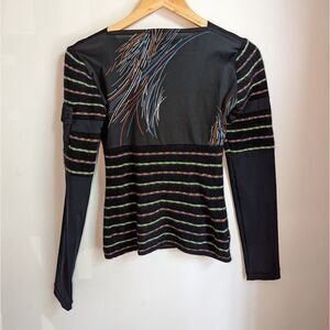 MYCO ANNA Canadian Black Stripes Artsy Wool Top Size Small