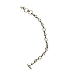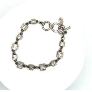 MYKA Signed Pewter Bracelet with Square Swarovski Crystals Toggle Clasp