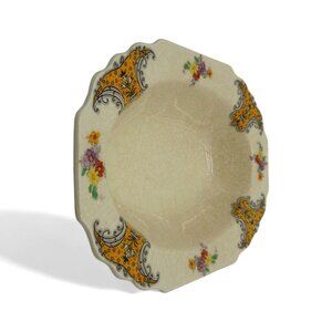 MYOTT SON & Co Floral Oval Bowl Crackle Glaze England Vintage 9"