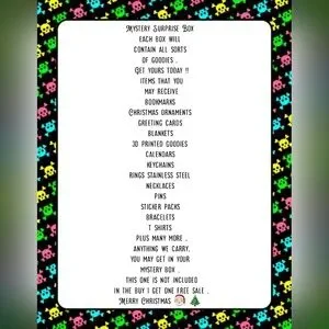 mystery Surprise Box full of all sorts of goodies are items are new and will be in sealed packaging or boxes, etc, ready for gift giving . only limited amount available. list of items you may get in the boxes are random :