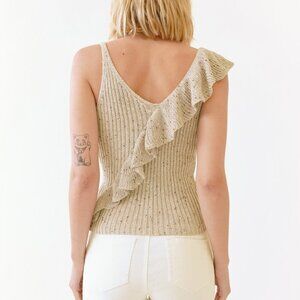 MYSTREE Beige Knit Ruffle Tank Top, Sleeveless Ribbed Sweater