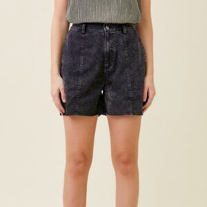 MYSTREE Black Acid Wash High Rise Denim Shorts Casual Vintage