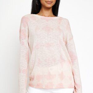 tie dye top, blush pink pullover, lightweight long sleeve, boho chic lounge top, casual everyday tee, pastel tie dye shirt, cozy layering piece, coastal cowgirl style, spring refresh outfit, minimalist casual wear, soft knit pullover, relaxed fit lounge tee