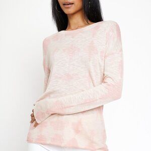 Blush Pink Tie-Dye Long Sleeve Top, Lightweight Pullover Lounge Tee, Soft Casual