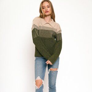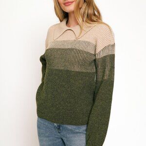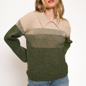 MYSTREE COLLARED COLOUR BLOCK PULLOVER SIZE SM
