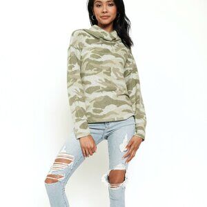 camo print sweater, camouflage pullover, green beige knit top, casual streetwear sweater, cozy camo knit, oversized turtleneck sweater, trendy loungewear, fall layering sweater, chic casual pullover, neutral camo fashion